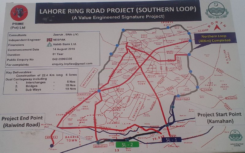 From Sabzazar through a proposed bridge linking directly to New Metro City Lahore