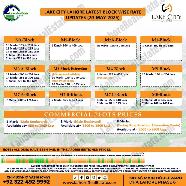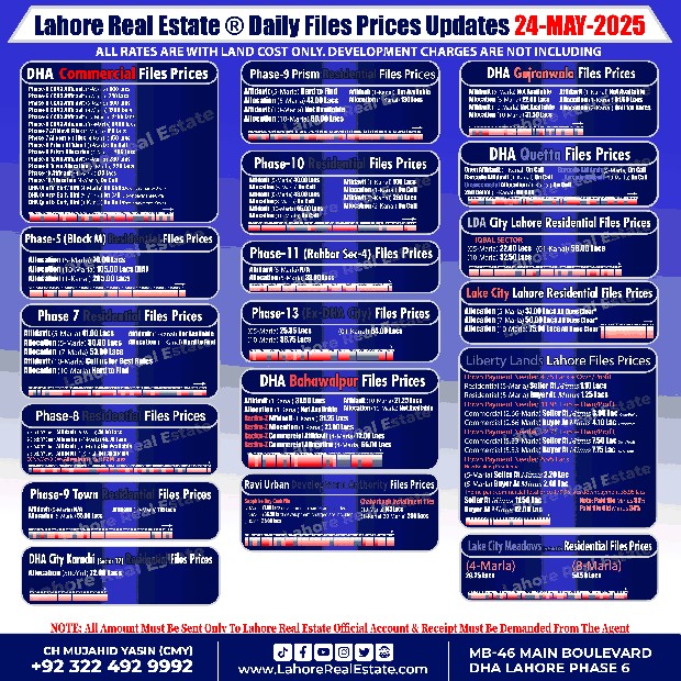 Disclaimer: This update reflects the current market status as of May 26, 2025. File rates can fluctuate. We recommend consulting with Lahore Real Estate ® for the most recent information and expert guidance tailored to your specific investment goals.