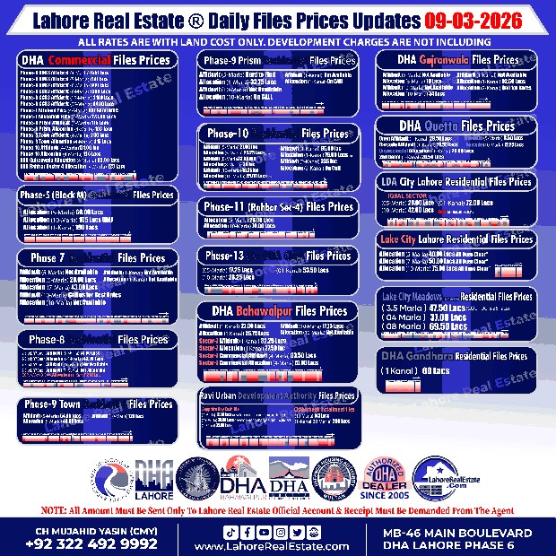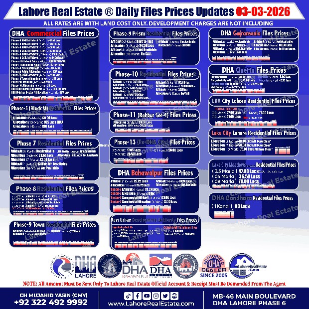 لاہور سمارٹ سٹی کی تازہ ترین رپورٹ کے مطابق، 14 مارچ 2026 تک مرجنگ کی خصوصی سہولت فراہم کی گئی ہے۔ ممبران اپنی واجب الادا رقم کا 50 فیصد فائلوں کی مرجنگ اور 50 فیصد نقد رقم کے ذریعے ادا کر سکتے ہیں، جبکہ نقد ادائیگی پر 3 فیصد ڈسکاؤنٹ بھی دیا جا رہا ہے۔ یاد رہے کہ مرج ہونے والی فائل میں کم از کم 35 فیصد رقم جمع ہونا ضروری ہے۔ دوسری جانب، اوورسیز پرائم اور اوورسیز ویسٹ کے وہ پلاٹ ہولڈرز جنہوں نے پوزیشن لینے کے باوجود زمین کی قیمت کی اقساط جمع نہیں کرائیں، ان کے پلاٹ 14 مارچ کے بعد کینسل کر دیے جائیں گے۔ یہ اپنی لوکیشن بچانے کا آخری موقع ہے۔ مزید برآں، 10 مرلہ اور 1 کنال کے تیار ولاز اب 20 فیصد ڈاؤن پیمنٹ پر دستیاب ہیں، جن کی قیمت میں ڈویلپمنٹ چارجز بھی شامل ہیں۔