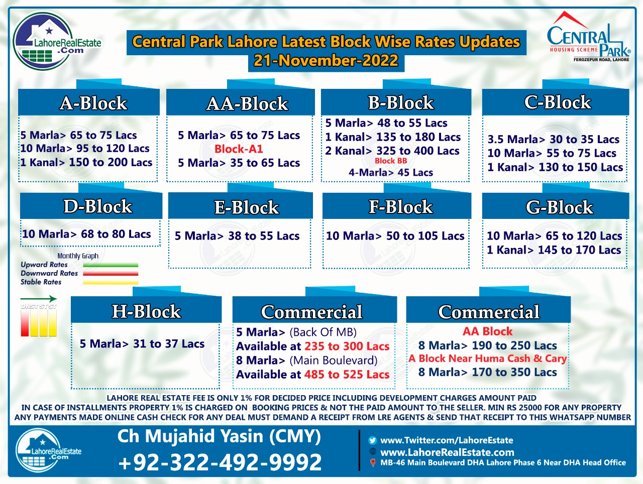 Central Park Lahore Latest Blockwise Prices Update November 2022