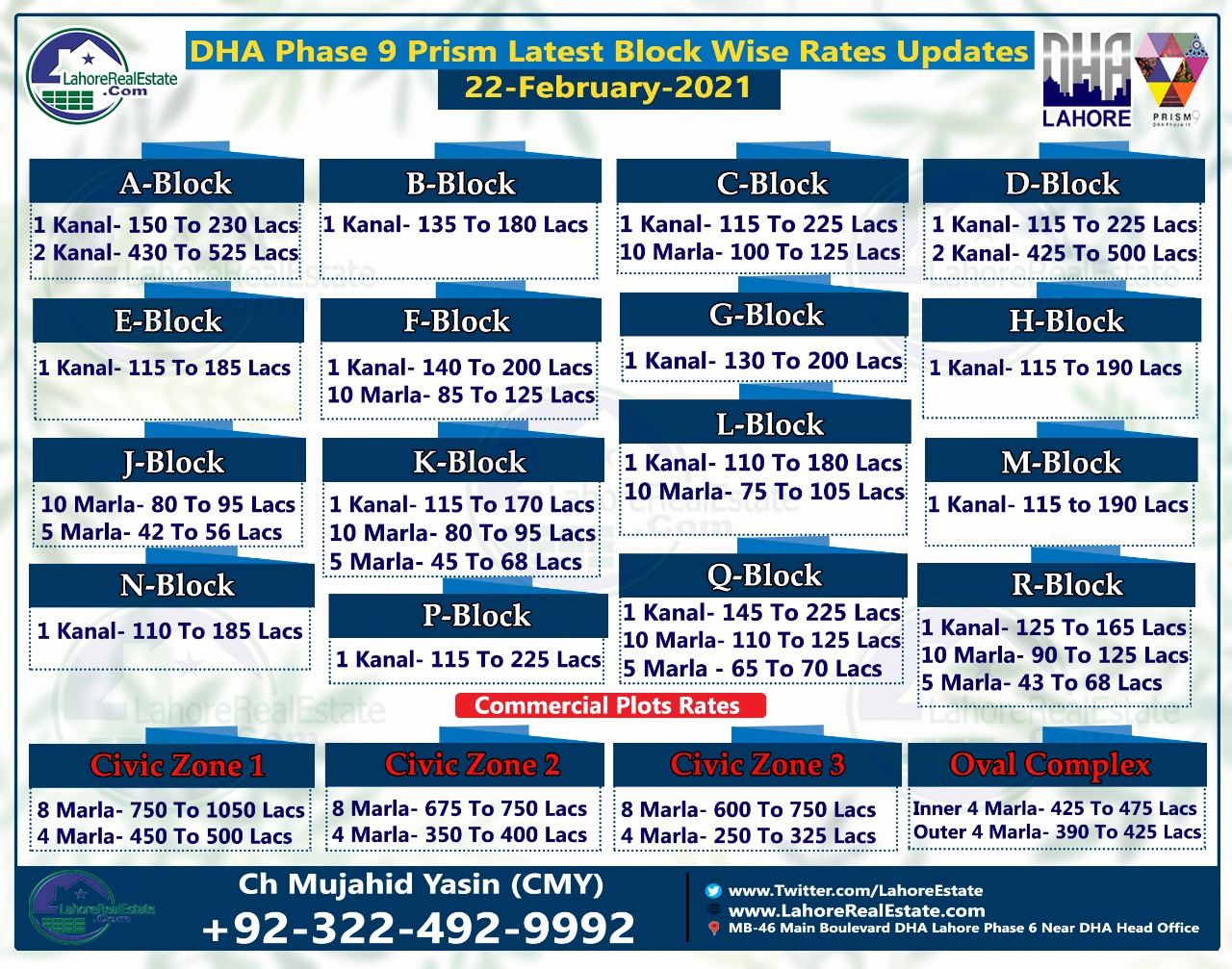 For phase 9 prism, I believe sector Q, P, D, good portion of E and sector B (although long-term) are best because there are lots of attraction here. I prefer sector E and D most because they have central locations and both of them have a huge attraction (D has golf course, E has zone 2 commercial with huge park) and also touch oval complex. I am not a fan of the lower blocks like N, K, L because of village, hudaira drain and factories problem. Also not a fan of block A (too expensive, too much litigation and no commercial attraction), and not a fan of H,F,G because HF,G, are already so expensive and there is little commercial attraction there. The only reason F,G,H are insanely expensive is they are close to ring road access which isn't that important when it takes you only 2 minutes more from blocks P,D,E to get to ring road.