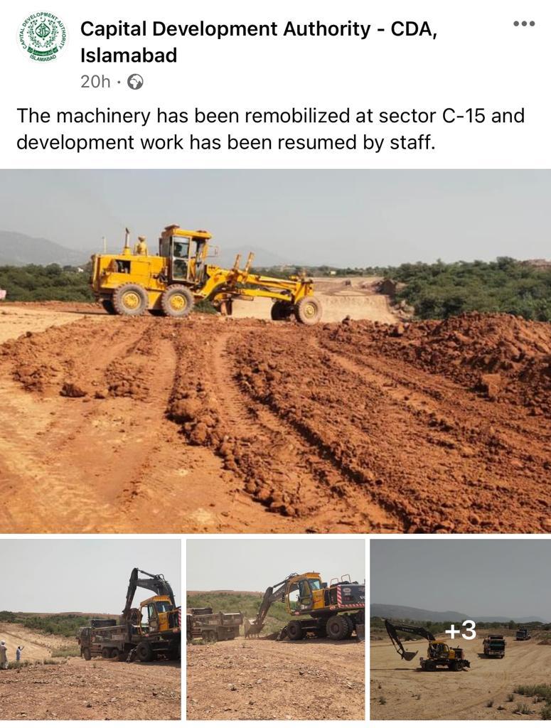 Development Work has Resumed in Sector C-15 Islamabad