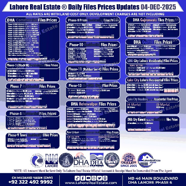 DHA Lahore Residential File Rates – December 04, 2025