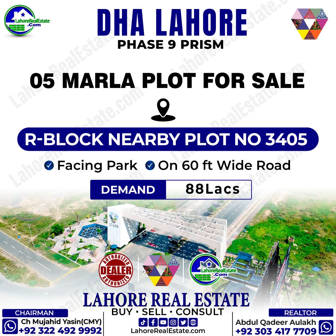 Looking for a prime real estate opportunity in Lahore? Your search ends here! We are thrilled to offer a 05 Marla plot for sale in the highly sought-after DHA Lahore, Phase 9 Prism, located in the picturesque R-Block.