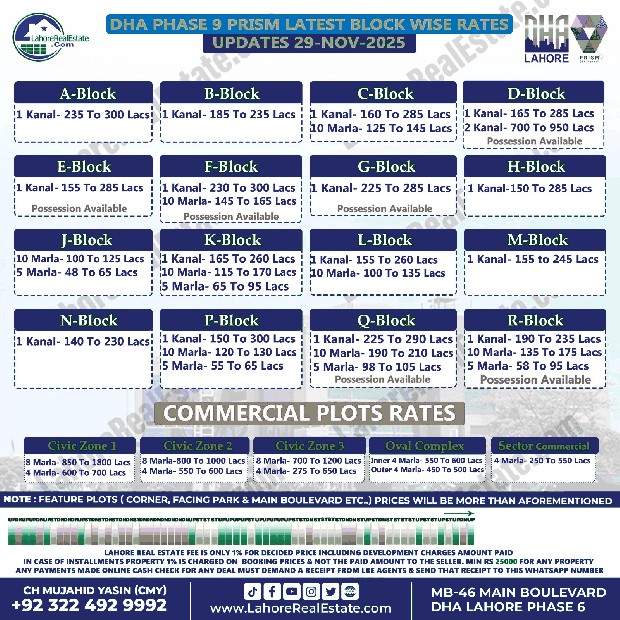 DHA Lahore Phase 9 Prism Plot Prices Blockwise Rates December 02, 2025.jpeg