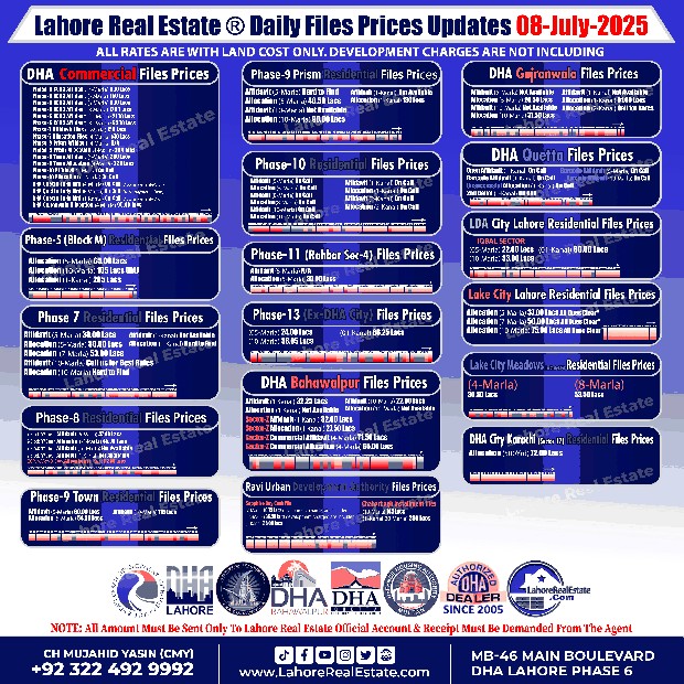 Lahore real estate, file rates Lahore, DHA Lahore file rates, property prices Lahore, real estate market Lahore, June 2025, DHA Phase 5, DHA Phase 6, DHA Phase 7, DHA Phase 9, DHA Phase 10, DHA Phase 13, Bahria Town Lahore, LDA City Lahore, Lake City Lahore, Liberty Lands Lahore, RUDA, Sapphire Bay, Chahar Bagh, real estate investment Pakistan, property trends Pakistan, Budget 2025-26 real estate, residential plots Lahore, commercial plots Lahore, property investment Lahore, real estate news Lahore, Lahore property market analysis