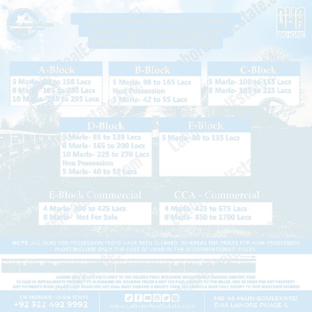 DHA Lahore Phase 9 Town Plot Prices Blockwise Rates Update 17-3-2026