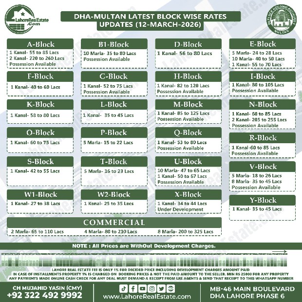 DHA Multan Plot Prices Blockwise Rates Update 17-3-2026