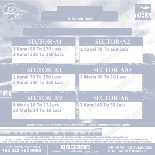 DHA Quetta Plot Prices Blockwise Rates Update 17-3-2026