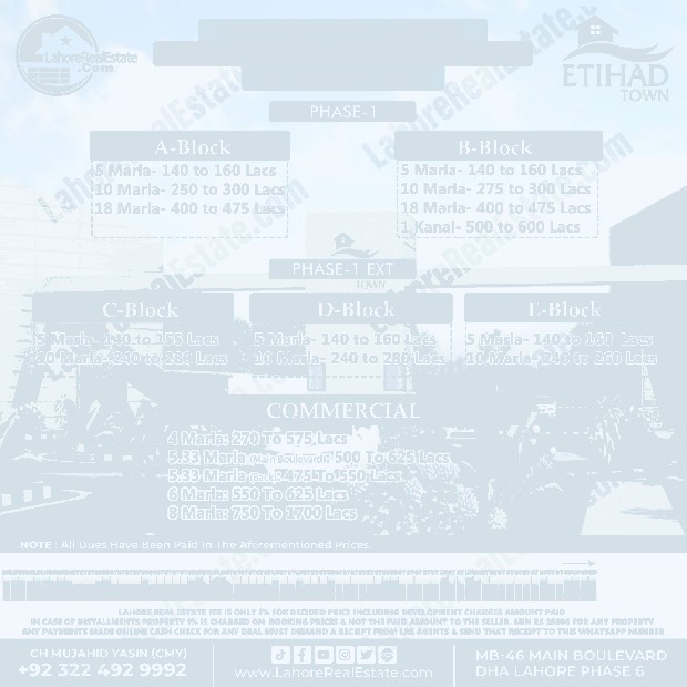 Etihad Town Lahore Plot Prices Blockwise Rates Update 17-3-2026