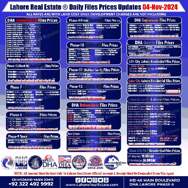 DHA Lahore Phase 7 File Rates Update