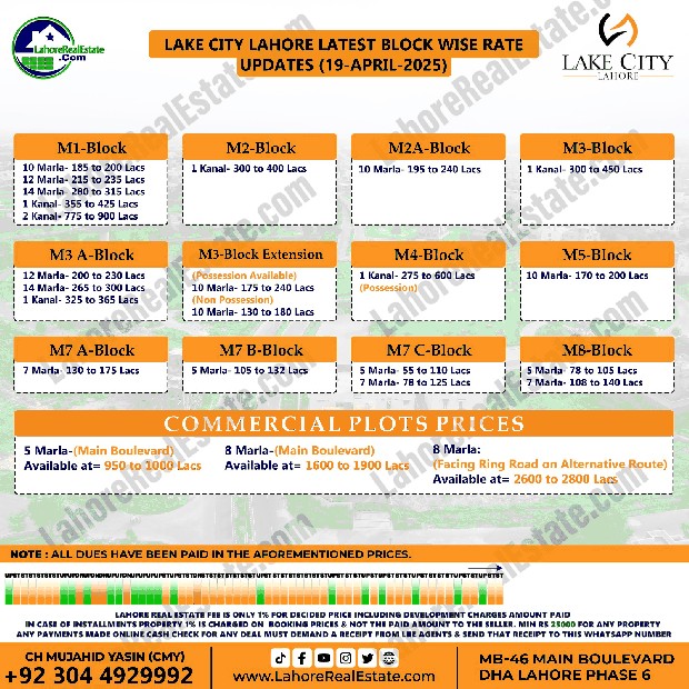 Lake City Lahore Plot Prices Blockwise Rates April 21, 2025