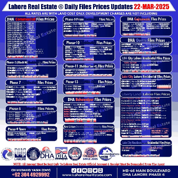 Disclaimer: This update reflects the current market status as of March 22, 2025. File rates can fluctuate. We recommend consulting with Lahore Real Estate ® for the most recent information and expert guidance tailored to your specific investment goals.
