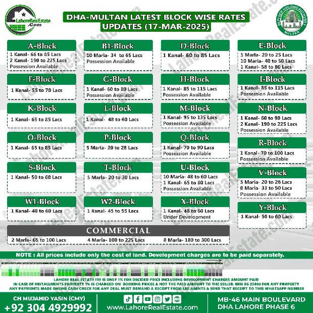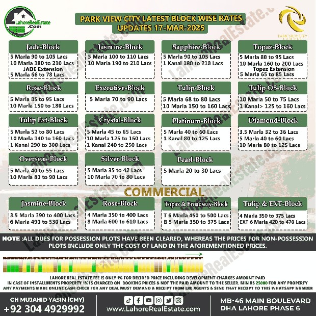 Disclaimer: This update reflects the current market status as of March 18, 2025. File rates can fluctuate. We recommend consulting with Lahore Real Estate ® for the most recent information and expert guidance tailored to your specific investment goals.