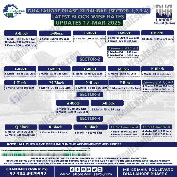 DHA Rahbar Phase 11 Sector-4 File Rates Update