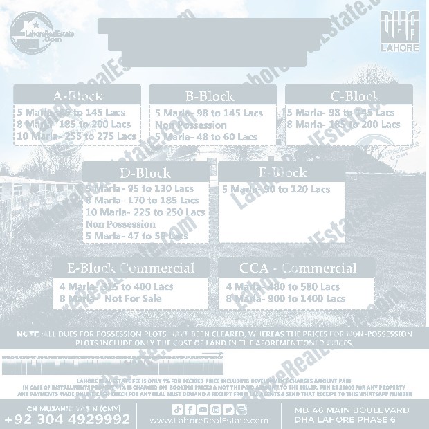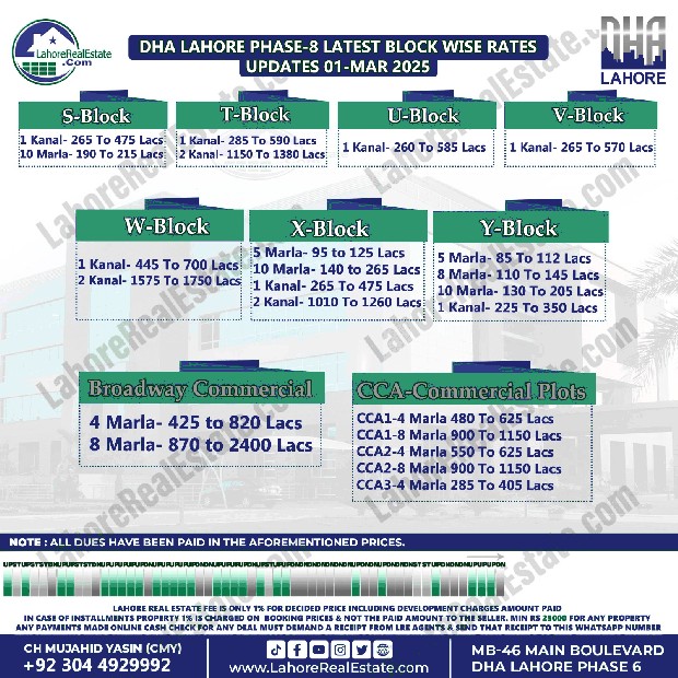 DHA Lahore Phase 8 Plot Prices Blockwise Rates March 04, 2025