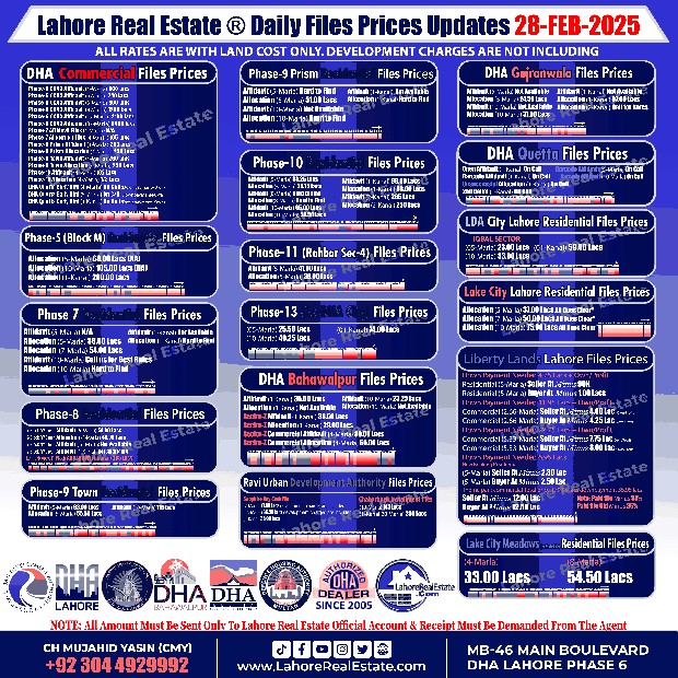 Disclaimer: This update reflects the current market status as of February 28, 2025. File rates can fluctuate. We recommend consulting with Lahore Real Estate ® for the most recent information and expert guidance tailored to your specific investment goals.