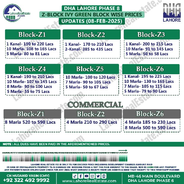 DHA Lahore Phase 8 IVY Green Plot Prices Blockwise Rates February 10, 2025