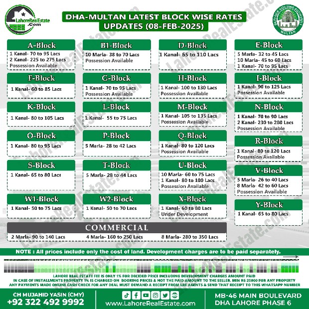 DHA Multan Plot Prices Blockwise Rates February 10, 2025