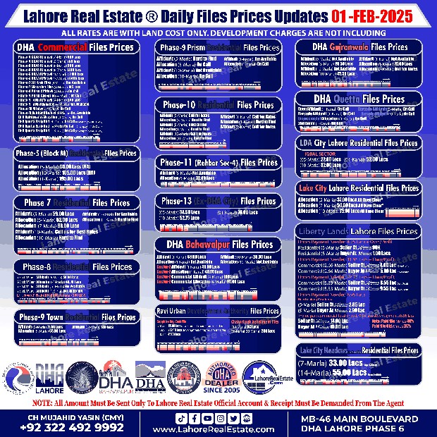 Disclaimer: This update reflects the current market status as of February 03, 2025. File rates can fluctuate. We recommend consulting with Lahore Real Estate ® for the most recent information and expert guidance tailored to your specific investment goals.