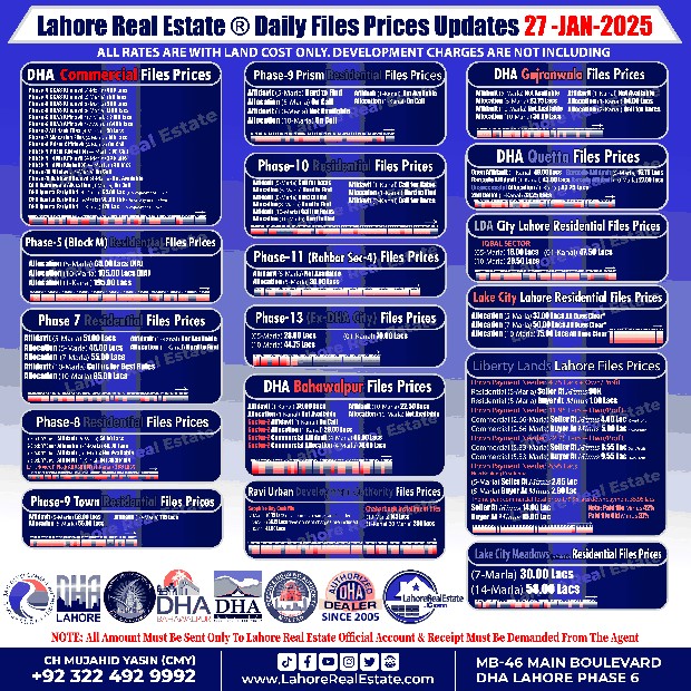 Disclaimer: This update reflects the current market status as of January 28, 2025. File rates can fluctuate. We recommend consulting with Lahore Real Estate ® for the most recent information and expert guidance tailored to your specific investment goals.