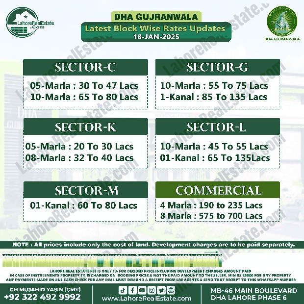 DHA Gujranwala Plot Prices Blockwise Rates January 20, 2025