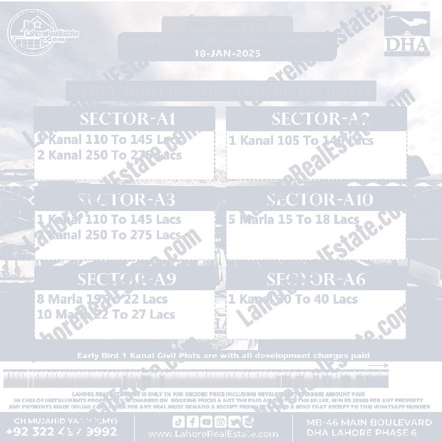 DHA Quetta Plot Prices Blockwise Rates January 20, 2025