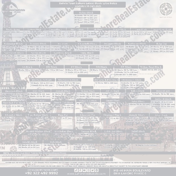 Disclaimer: This update reflects the current market status as of January 18, 2025. File rates can fluctuate. We recommend consulting with Lahore Real Estate ® for the most recent information and expert guidance tailored to your specific investment goals.
