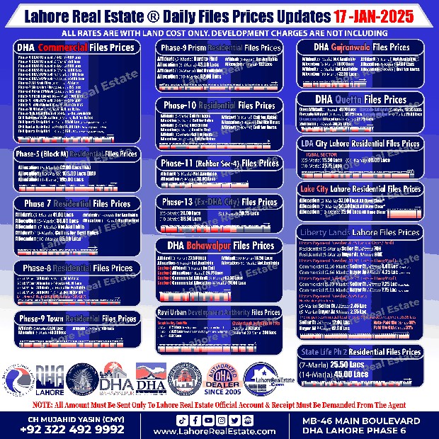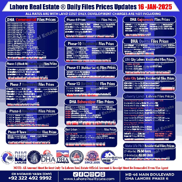 Disclaimer: This update reflects the current market status as of January 16, 2025. File rates can fluctuate. We recommend consulting with Lahore Real Estate ® for the most recent information and expert guidance tailored to your specific investment goals.