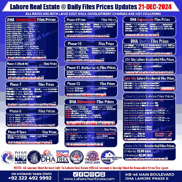 Disclaimer: This update reflects the current market status as of December 23, 2024. File rates can fluctuate. We recommend consulting with Lahore Real Estate ® for the most recent information and expert guidance tailored to your specific investment goals.