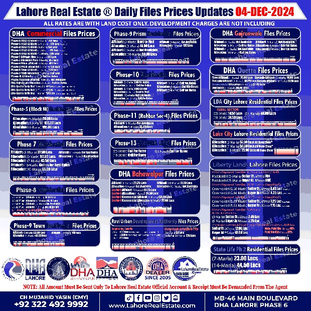 Disclaimer: This update reflects the current market status as of December 04, 2024. File rates can fluctuate. We recommend consulting with Lahore Real Estate ® for the most recent information and expert guidance tailored to your specific investment goals.