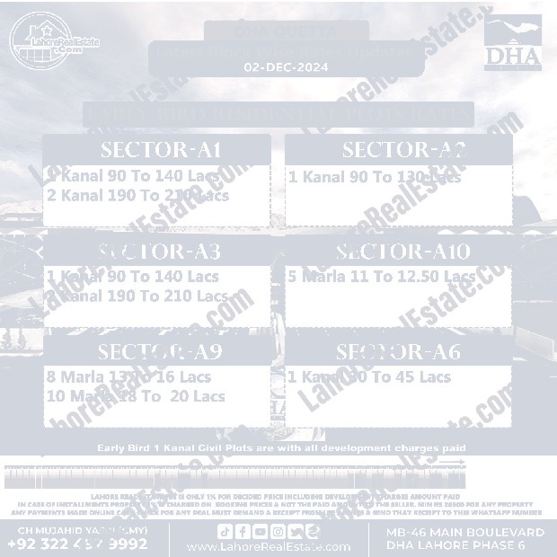 DHA Quetta Plot Prices Blockwise Rates December 02, 2024