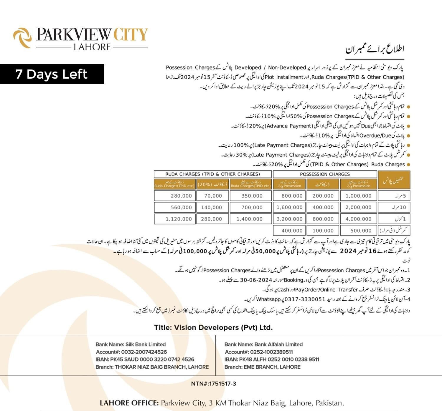 New Booking Price 37.75 Lacs 5 Marla Residential Down Payment 6.95 Lacs (Seller at -2.45 Lacs | Buyer at -2.55 Lacs)