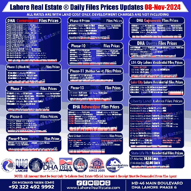 Disclaimer: This update reflects the current market status as of November 08, 2024. File rates can fluctuate. We recommend consulting with Lahore Real Estate ® for the most recent information and expert guidance tailored to your specific investment goals.