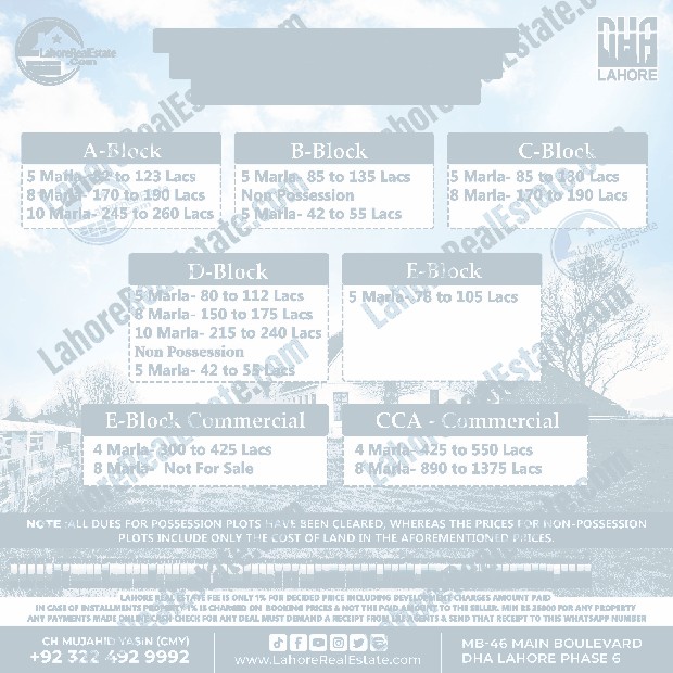 DHA Lahore Phase 6 Plot Prices Blockwise Rates November 04, 2024
