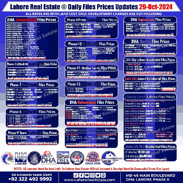 Disclaimer: This update reflects the current market status as of October 29, 2024. File rates can fluctuate. We recommend consulting with Lahore Real Estate ® for the most recent information and expert guidance tailored to your specific investment goals.