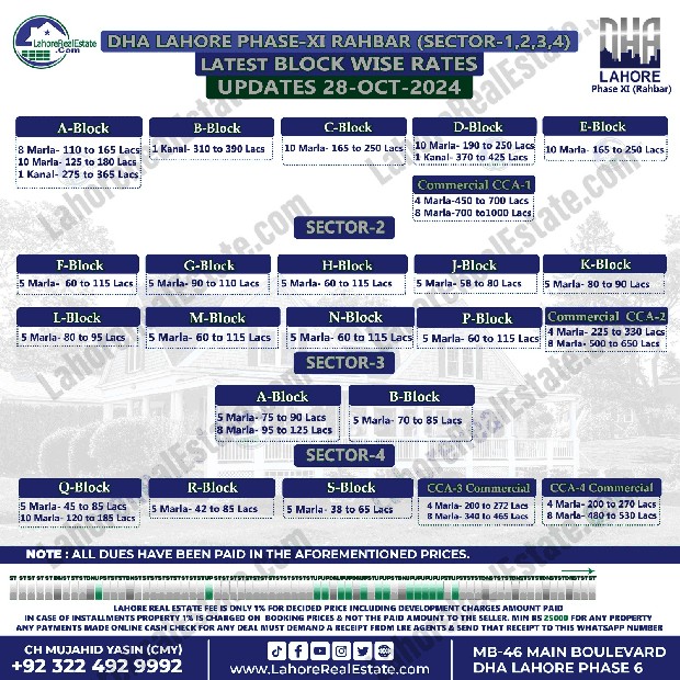 DHA Rahbar Sector 1 2 3 4 Plot Prices Blockwise Rates Oct 28, 2024