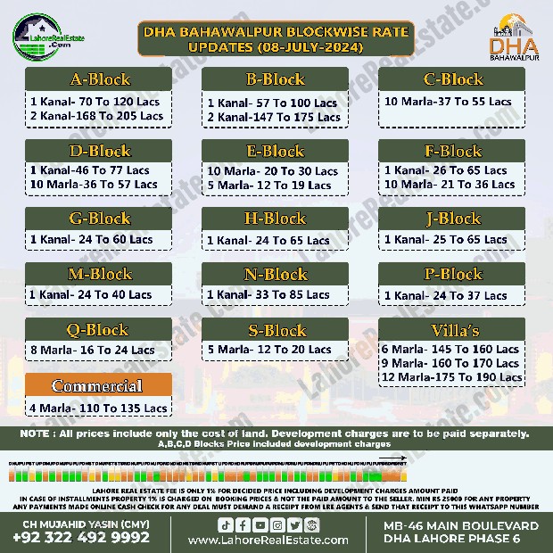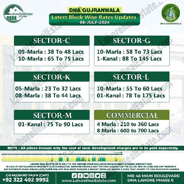 Disclaimer: This update reflects the current market status as of July 9th, 2024. File rates can fluctuate. We recommend consulting with Lahore Real Estate ® for the most recent information and expert guidance tailored to your specific investment goals.