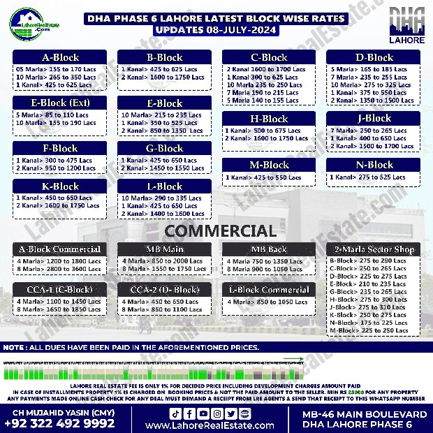 Booking Price 149.95 Lacs 5.33 Marla Commercial Down Payment 22.75 Lacs (Seller at -7.50 Lacs | Buyer at -7.75 Lacs)