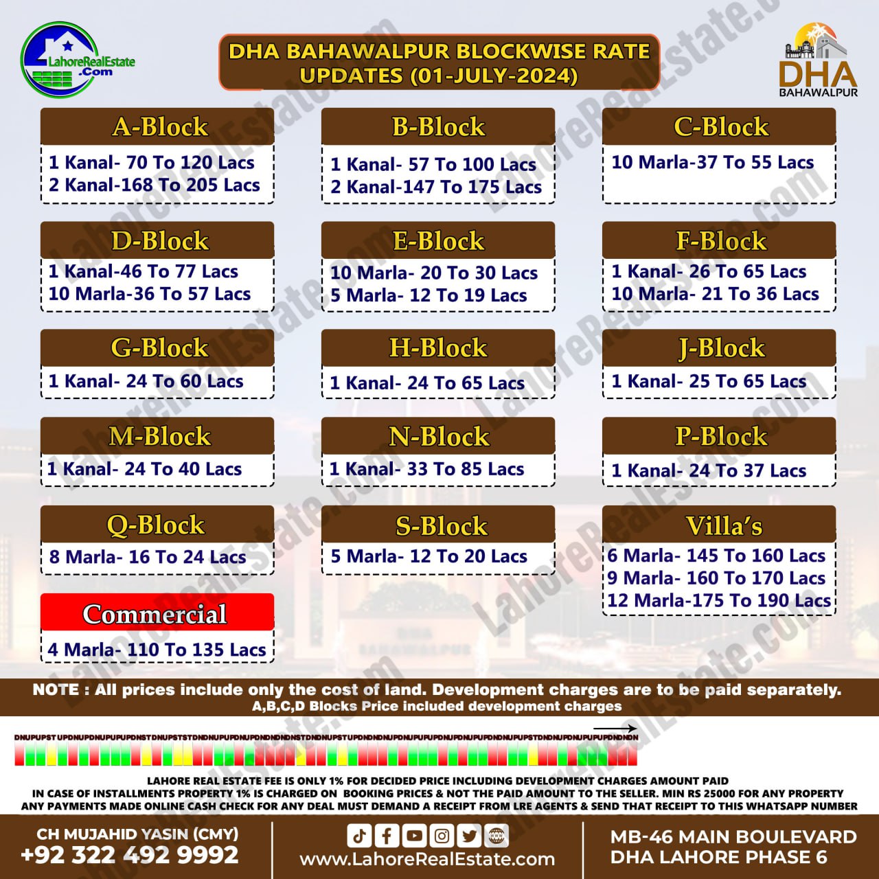 DHA Bahawalpur Plot Prices Blockwise Rates July 03, 2024