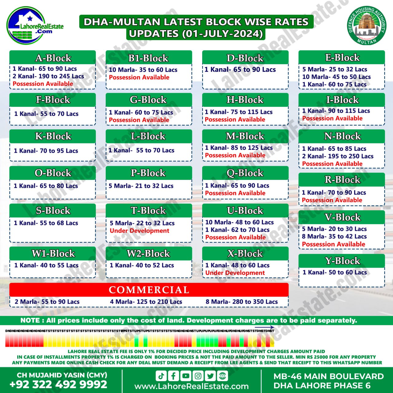 DHA Multan Plot Prices Blockwise Rates July 03, 2024