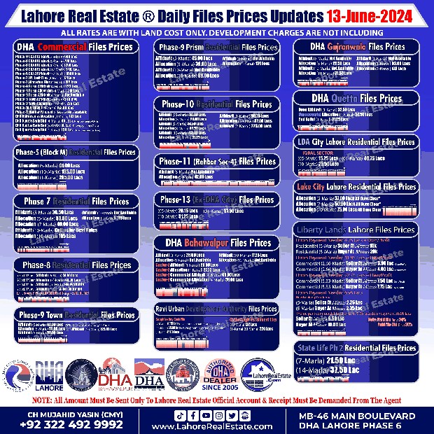 Disclaimer: This update reflects the current market status as of June 22, 2024. File rates can fluctuate. We recommend consulting with Lahore Real Estate ® for the most recent information and expert guidance tailored to your specific investment goals.