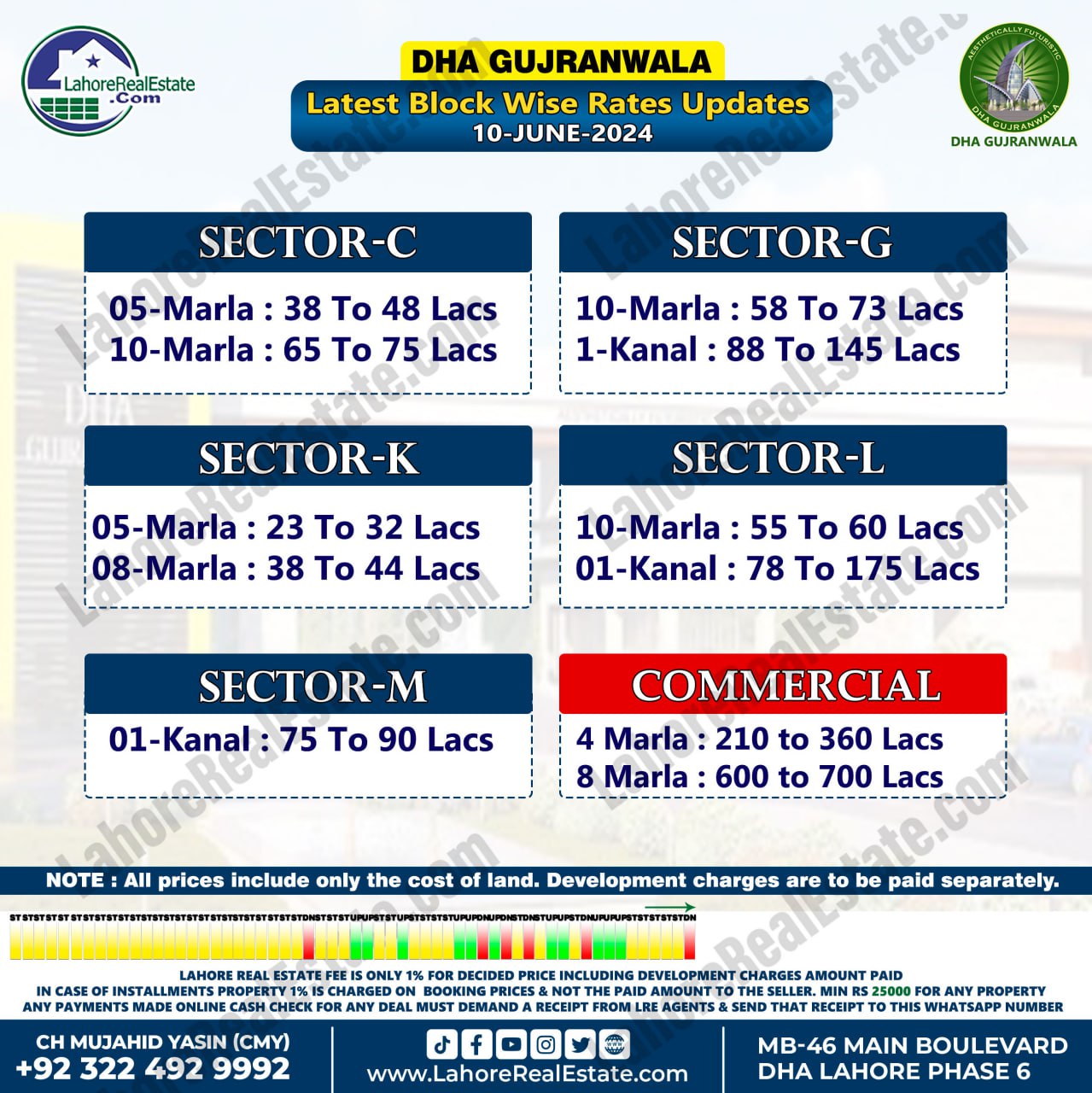 DHA Gujranwala Plot Prices Blockwise Rates June 10, 2024