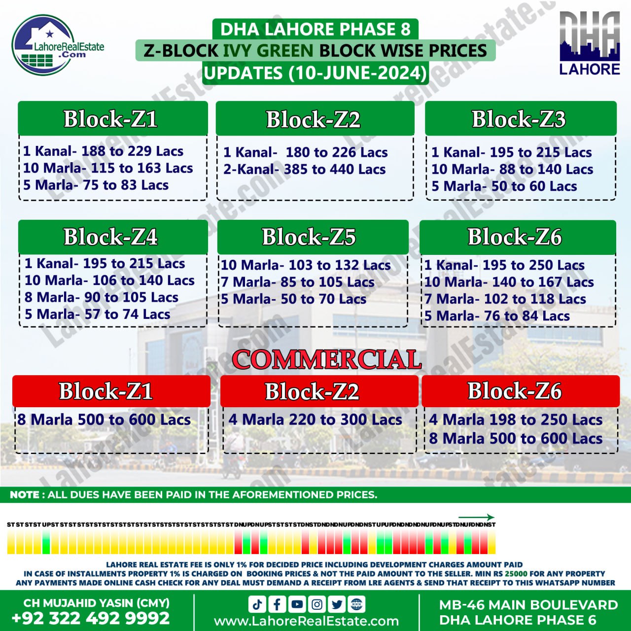 DHA Lahore Phase 8 IVY Green Plot Prices Blockwise Rates June 10, 2024