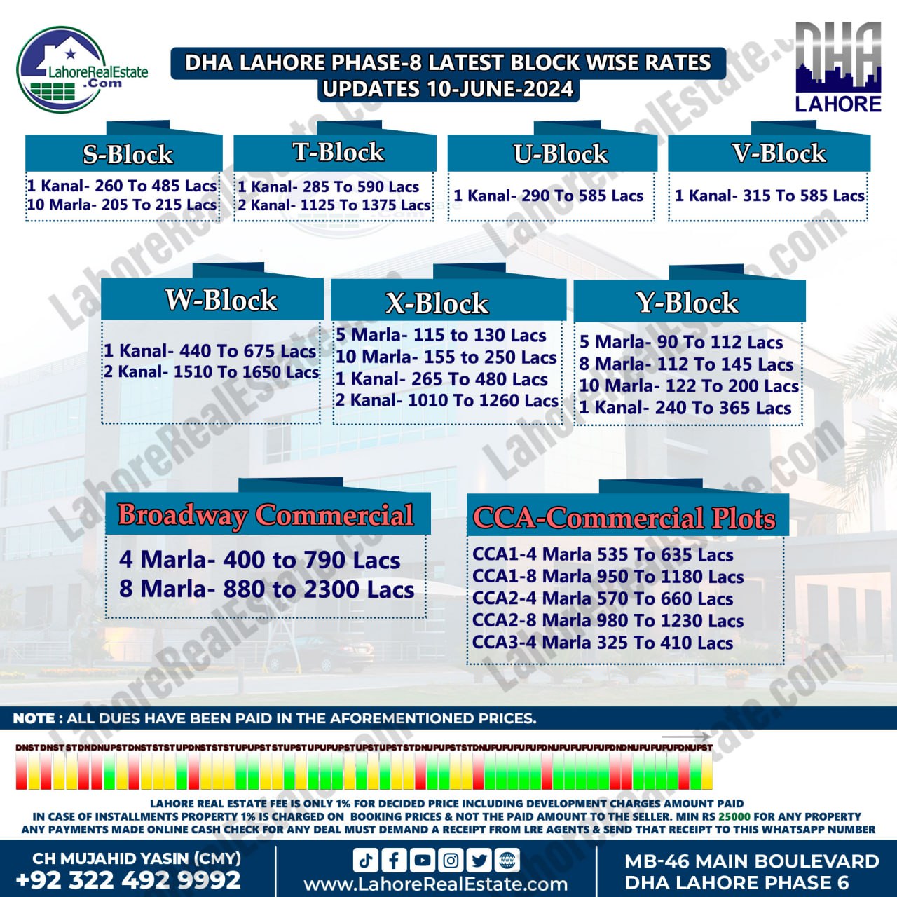 DHA Lahore Phase 8 Plot Prices Blockwise Rates June 10, 2024