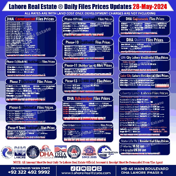 Disclaimer: This update reflects the current market status as of May 28, 2024. File rates can fluctuate. We recommend consulting with Lahore Real Estate ® for the most recent information and expert guidance tailored to your specific investment goals.