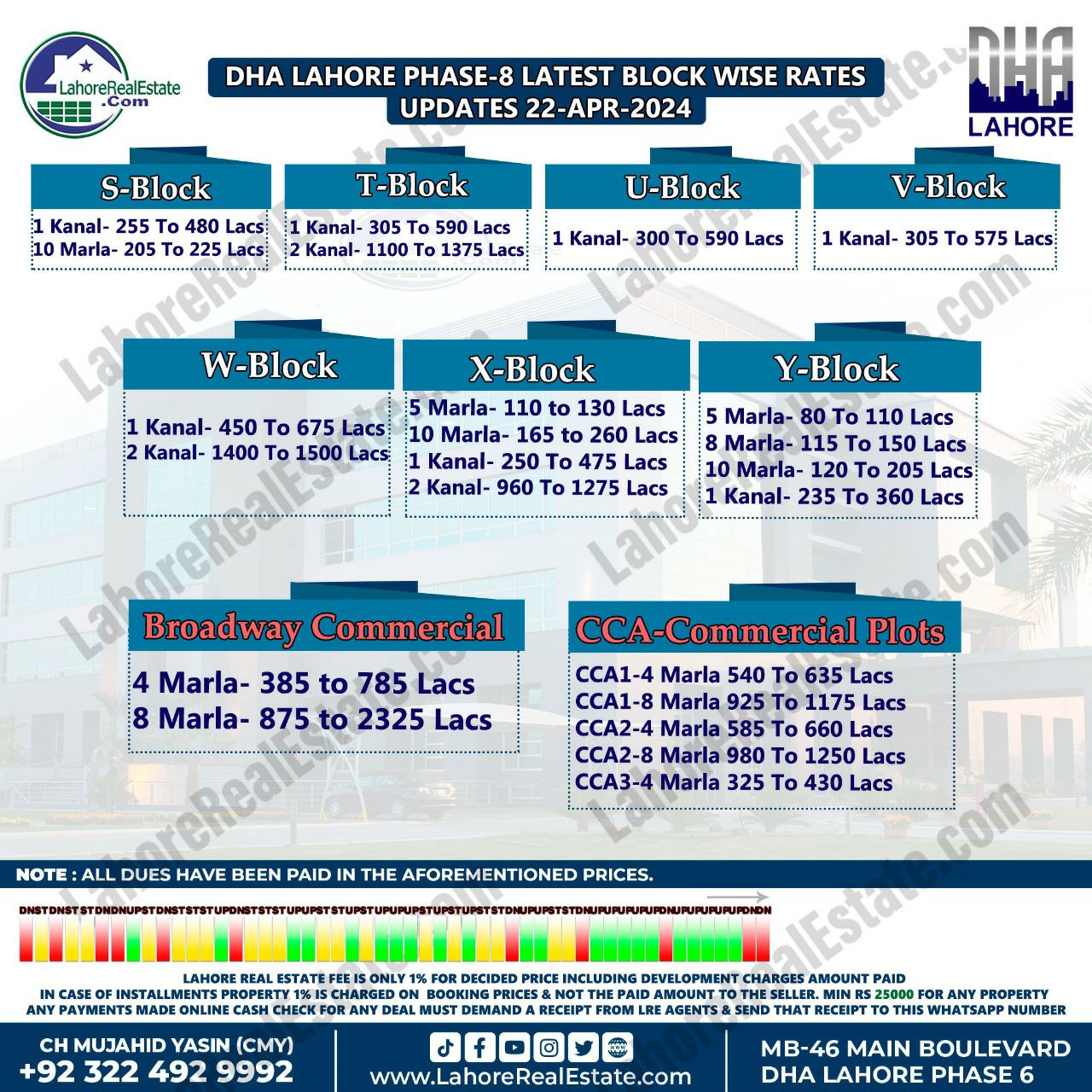 DHA Lahore Phase 8 Plot Prices Blockwise Rates 22nd April 2024