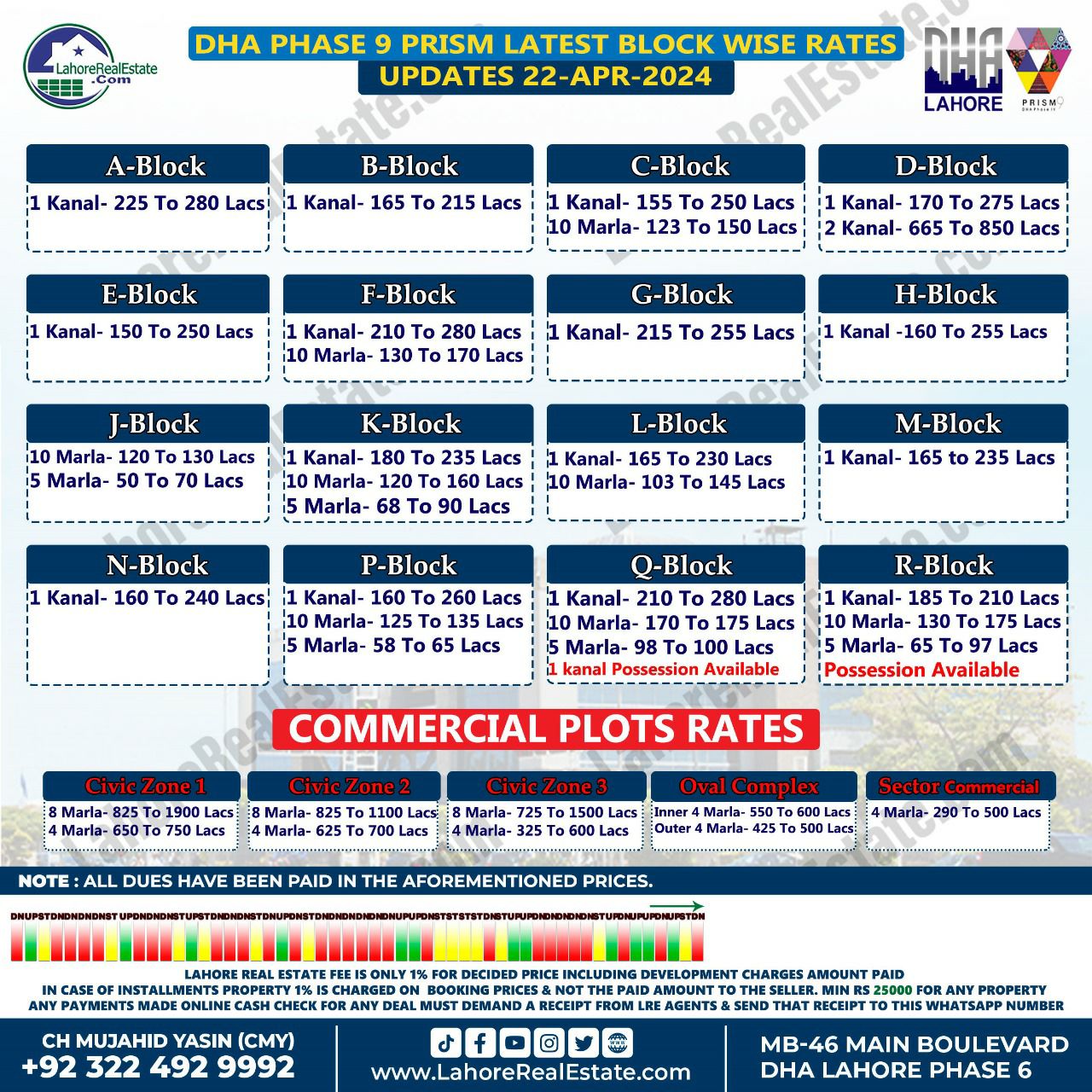 DHA Lahore Phase 9 Prism Plot Prices Blockwise Rates 22nd April 2024