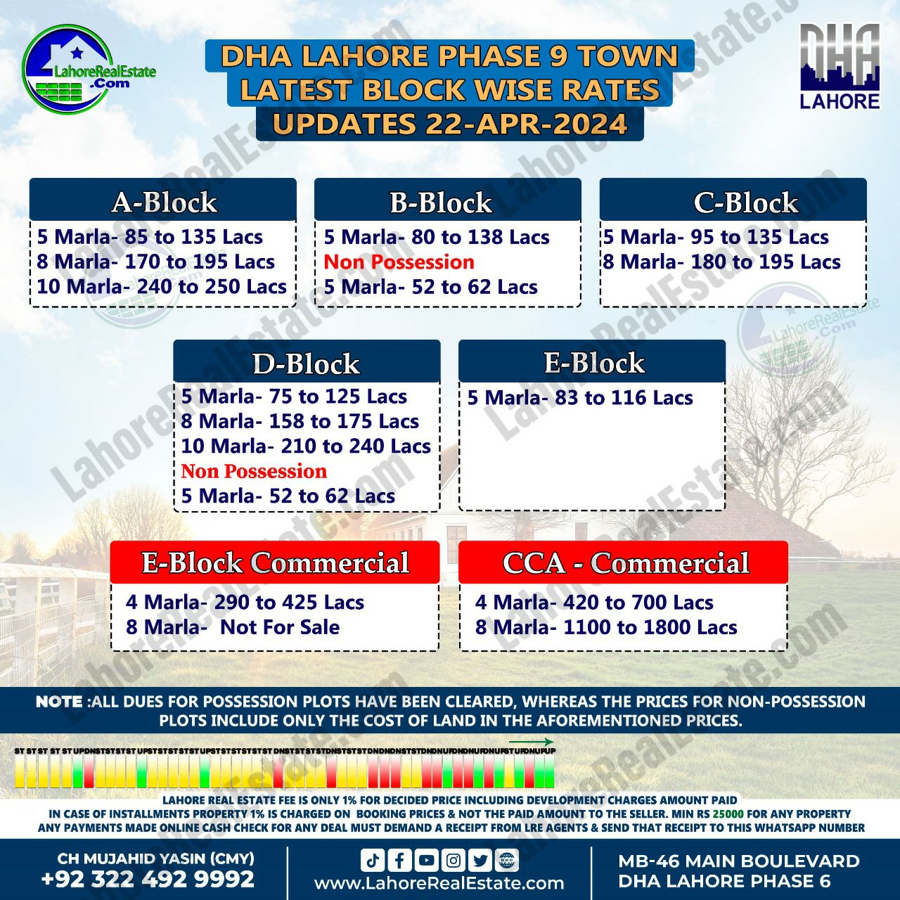 DHA Lahore Phase 9 Town Plot Prices Blockwise Rates 22nd April 2024