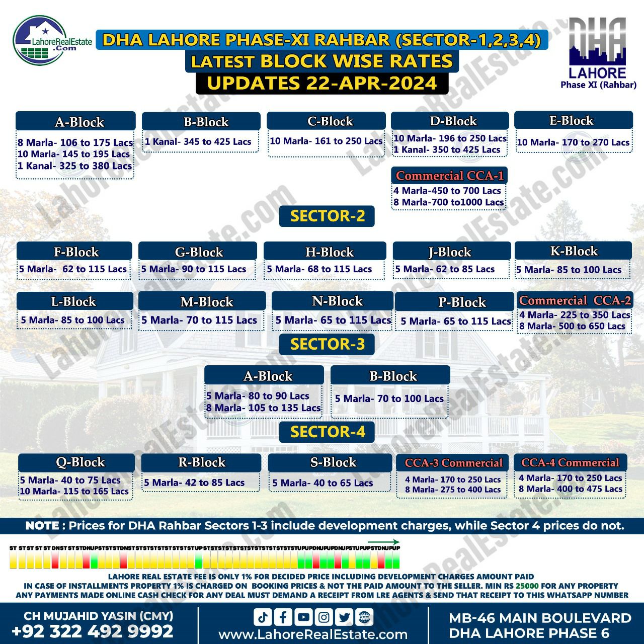 DHA Rahbar Sector 1 2 3 4 Plot Prices Blockwise Rates 22nd April 2024
